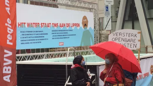 In West-Vlaanderen gingen de vakbonden op bezoek bij minister van Werk Nathalie Muylle. In Antwerpen bouwde het ABVV op het Mediaplein een zwembad om uit te drukken dat het 'water aan de lippen staat'.
